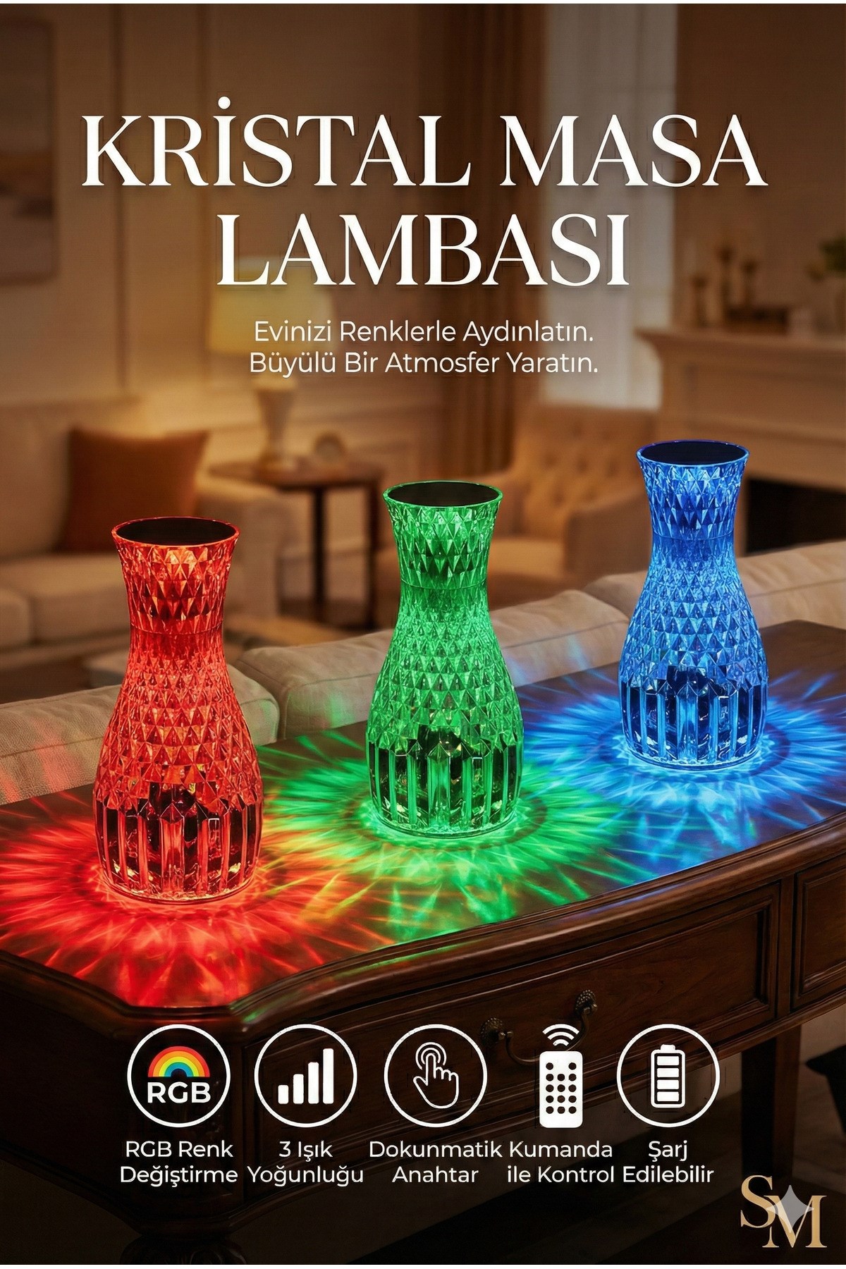 hepOhep Sürahi Model USB Şarjlı Kumandalı 16 Farklı Işık Modlu Masa Üstü Kristal Akrilik Lamba Led