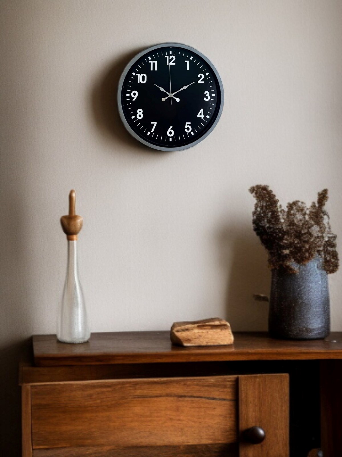 Siyah Klasik 52 Cm Modern Duvar Saati