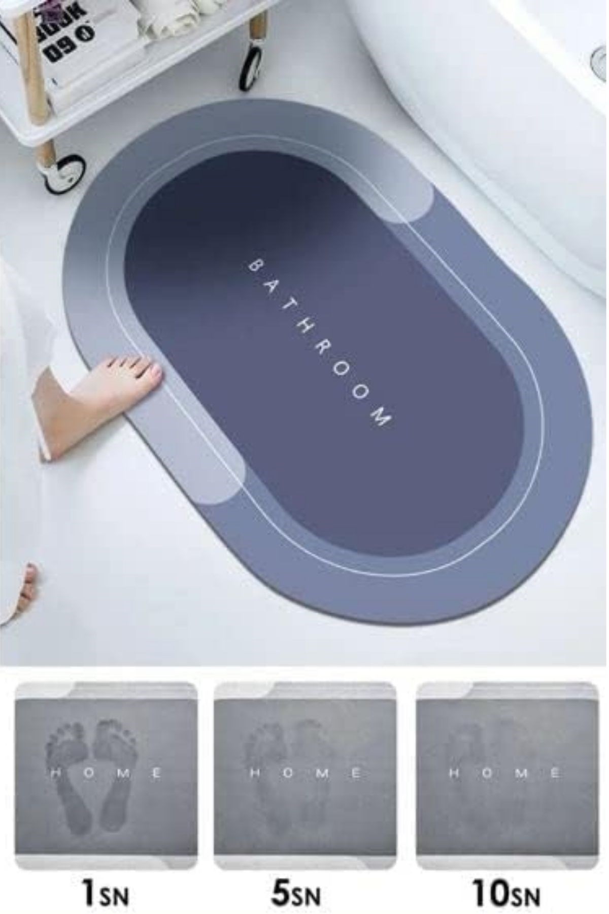 hepOhep Sihirli Süper Su Emici Kaymaz Tabanlı Oval Paspas 40x60 cm – Şıklık ve Fonksiyon Bir Arada!